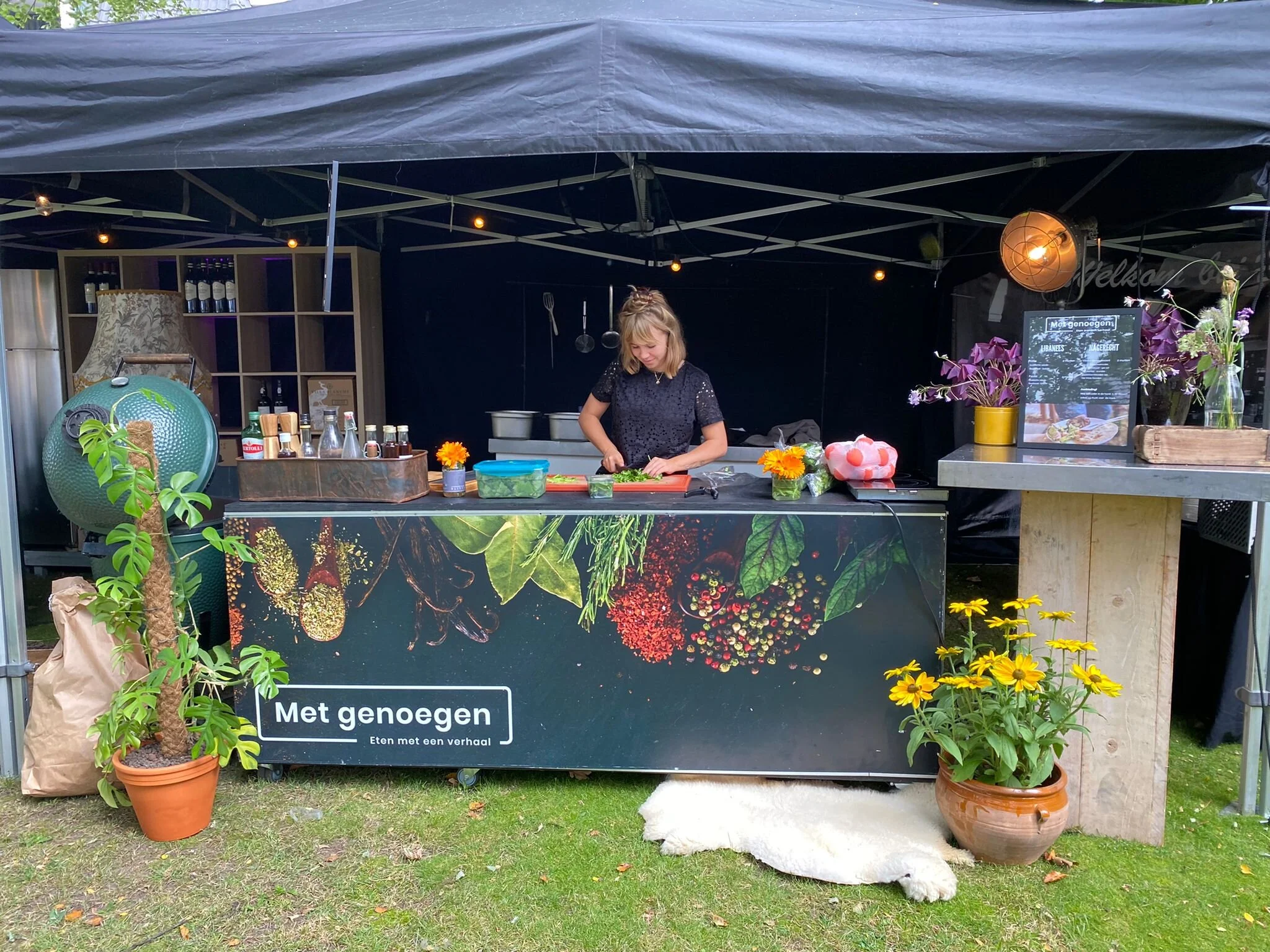 Met onze buitenkeuken en verrijdbare Big Green Eggs kunnen wij overal een heerlijk diner neerzetten.